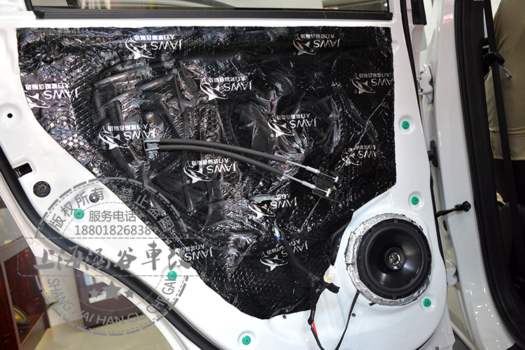 这是车后门,要先做一层隔音,这样音质效果会更好!