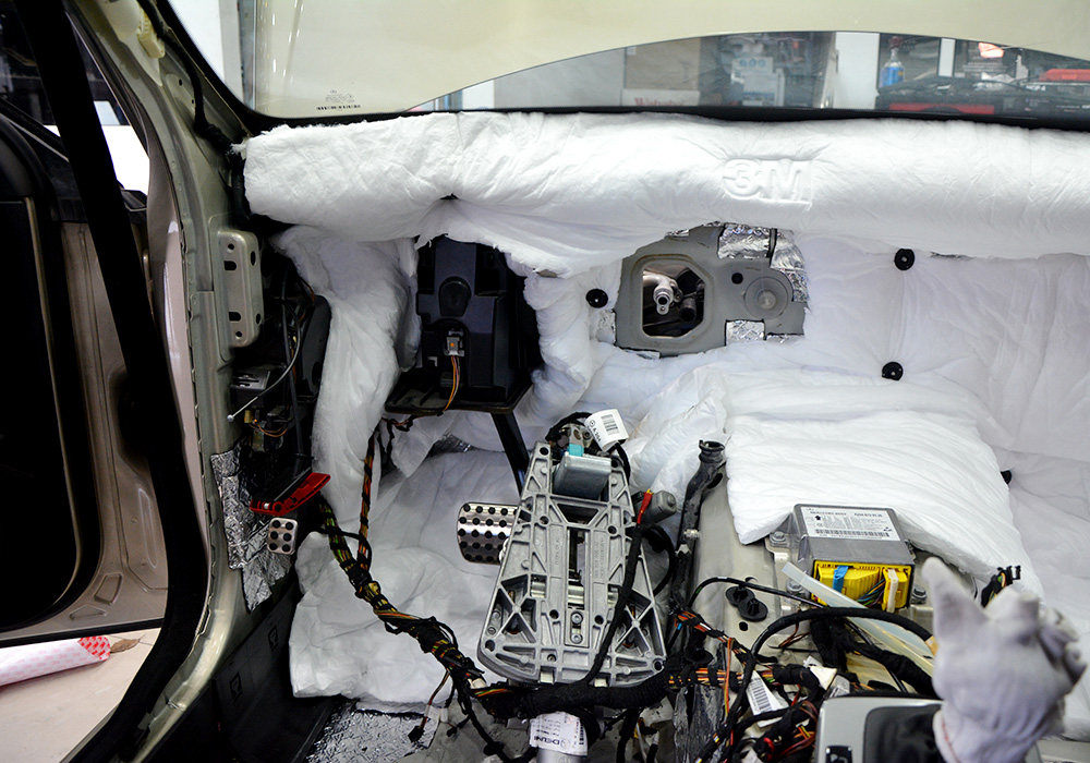 奔驰C200改装美国3M汽车防火墙地板隔音 除异味