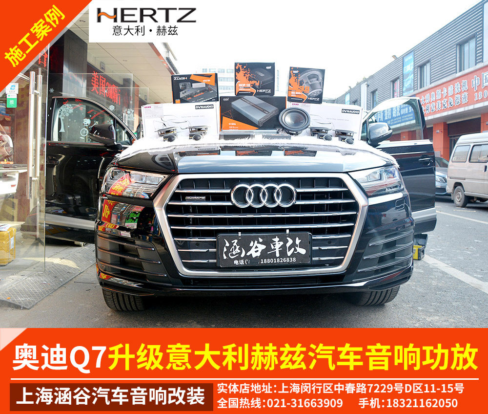 奥迪Q7升级丹麦丹拿汽车音响232两分频 意大利赫兹汽车低音炮功放H8处理器