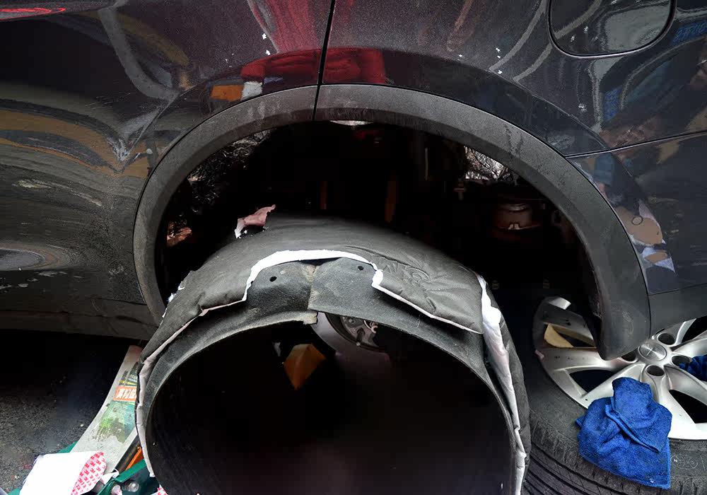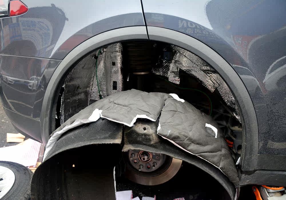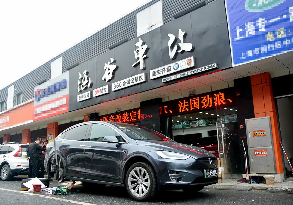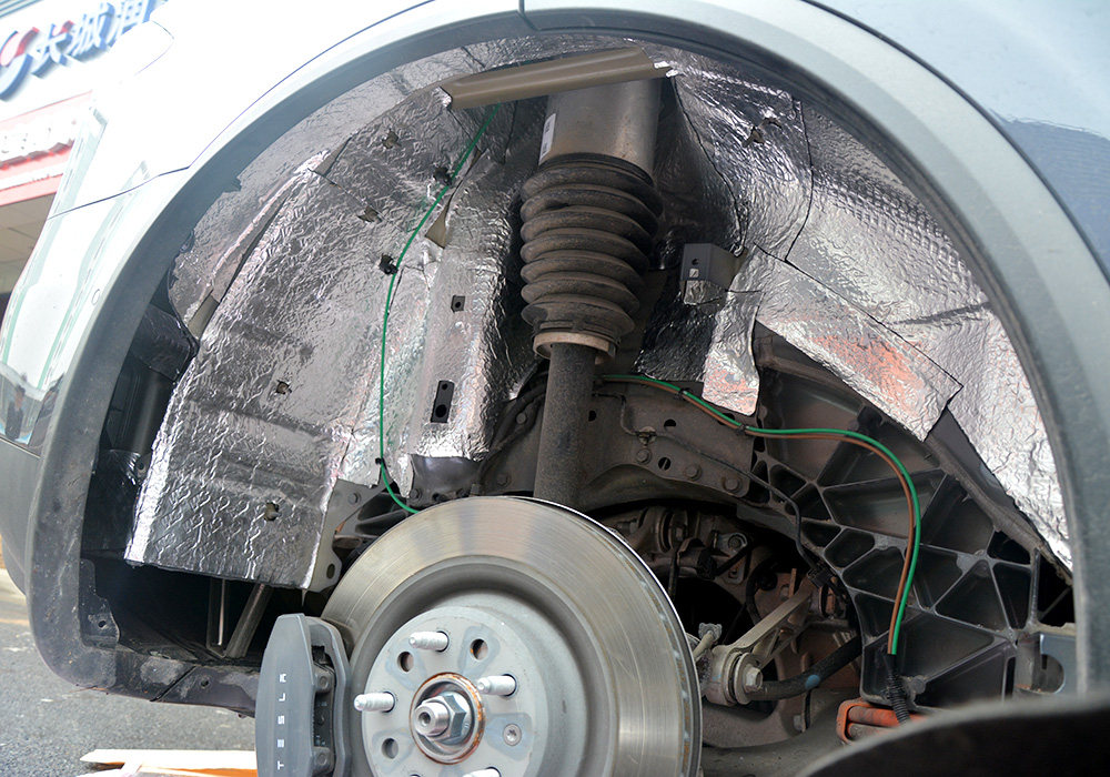 【上海涵谷车改】特斯拉MODEL X车轮隔音降噪 汽车前机盖止震隔音