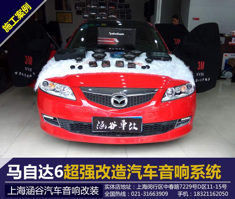 总结:马自达6可谓汽车行业的经典作品,广受消费喜爱与好评,车主是一位80后的美女,对音乐十分的热爱,对于马自达6的通病就是汽车音响音质不够优秀,于是车主打算改装一套自己喜欢的音响,经过实体对比,车主自己选择了,法国的劲浪音响,美国的来福功放,在加一个德国艾索特超低音喇叭,这样的搭配,堪称绝美,音质、音域表现的非常淋漓尽致,激情澎湃。