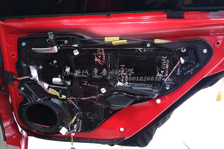 要进行隔音处理,粘贴大面积止震板,可以有效阻挡噪音,让车内保持一个安静的环境,从而提升音质表现