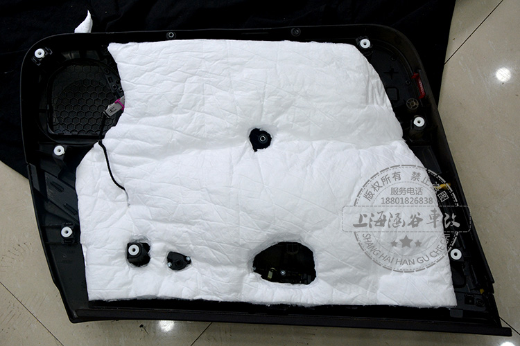 最后在汽车门板内部安装3M新雪丽隔音棉,可以有效减少噪音传递,并且具有一定的隔热功能