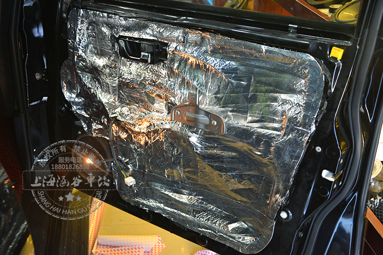 在车门板上粘贴3M大块的止震板,可以有效的减少震动,减少噪音,并且可以起到一定的密封防水功能
