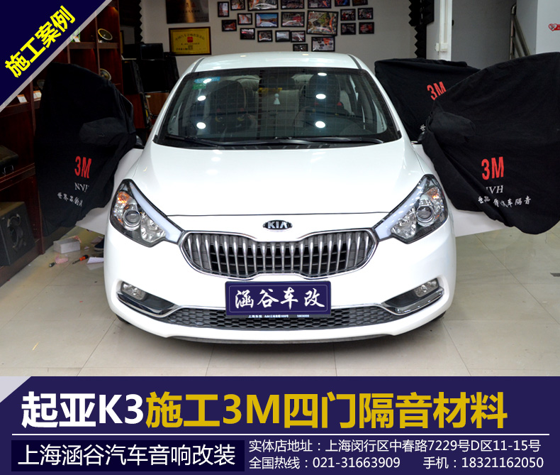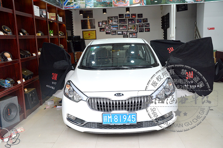 【上海涵谷汽车音响改装】东风悦达起亚K3施工3M四门隔音材料