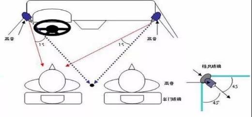 声场定位主要取决于设置在驾驶室前排的高音单元和设置在驾驶室左右的中低音单元,因为人的听觉系统主要是靠中音频率部分的声波到达左右耳朵的先后来进行声源定位的。安装在A柱附近的高音扬声器与安装在车门下前方的中低音扬声器只有达到协调的匹配才能形成协调的声源一致感,同时考虑到听众的位置,左右中低音扬声器的放声角度还要根据不同情况反复计算,准确调校,只有这样才能使汽车音响要达到良好的声场定位。